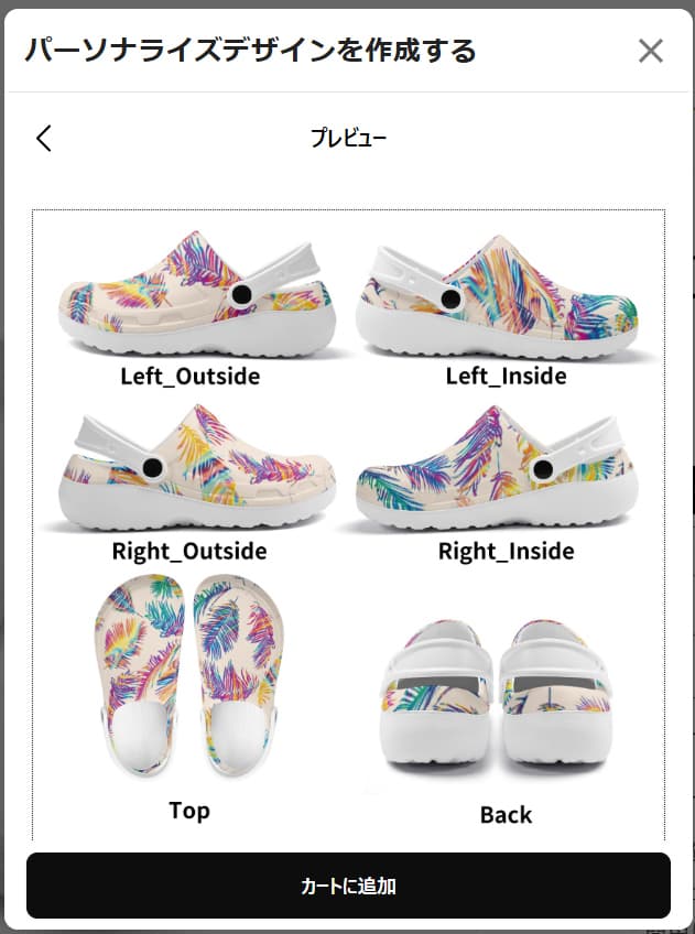 2.アイテムのサイズ、数量を選択し,カスタマイズをクリック
