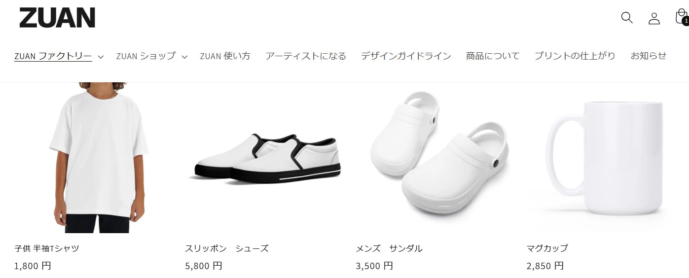 ZUANファクトリーとは、ファクトリーにあるアイテムに、自身で作成されたオリジナルコンテンツ、或いは、他者から事前の許諾を得ているコンテンツをアップロードし、オリジナル商品を作ることが出来るシステムのことです。