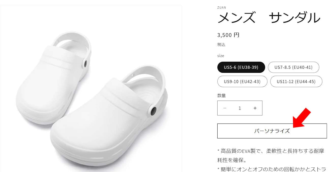 2.アイテムのサイズ、数量を選択し,カスタマイズをクリック