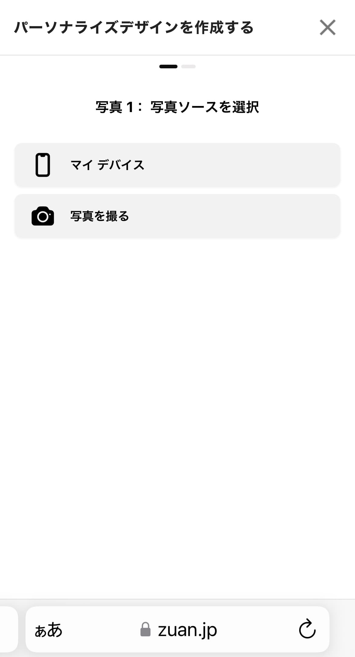 お持ちのスマートフォン、パソコンからオリジナルデザイン画像を選んでアップロードする。